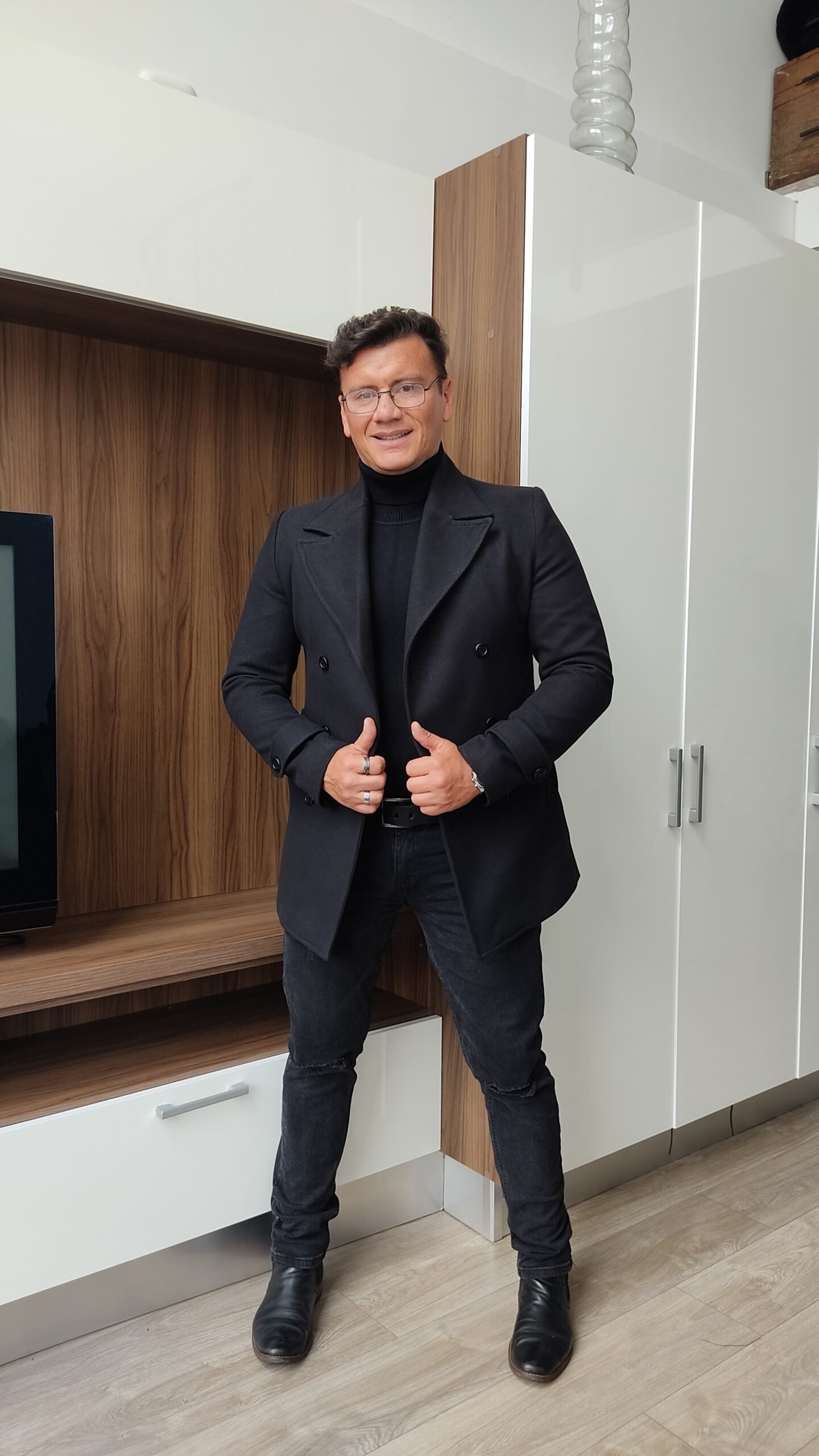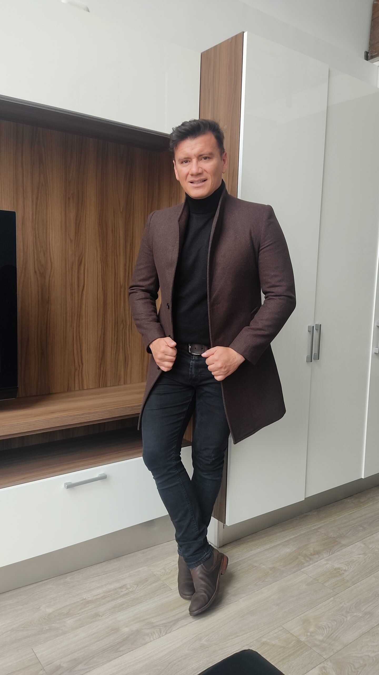Paño cashemere Cuello entero de 6 cms 5 botones frontales Caja de puño de 4 botones Bolsillos diagonales 2 Bolsillos internos Abertura atrás 90 cms de largo